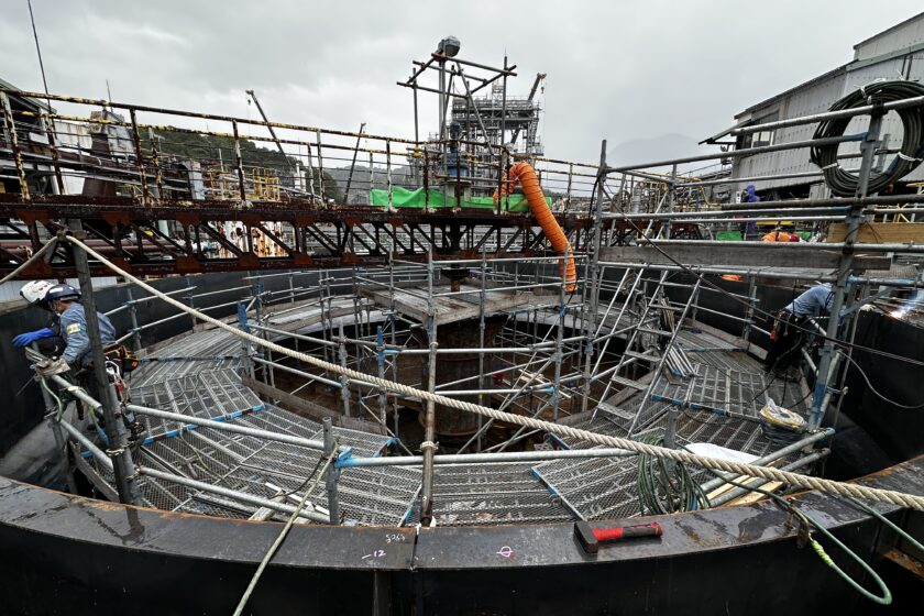 常時満水 直径13m高さ3m浮上分離槽の更新工事
