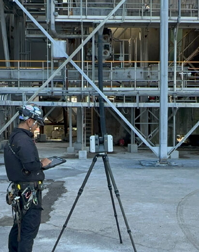 現場を3Dスキャンし点群データに。 モデリングデータから異常箇所を発見します。