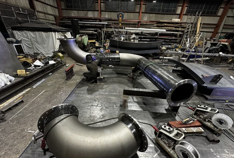 PlantDockの「製造・現地工事」は計測・設計・製造・工事の一貫提供のサービスフローの最終工程です。この段階では、3D設計モデルを元に施工計画を立て、搬入経路や施工手順の